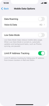 Press the indicator next to "Low Data Mode" to turn the function on or off.