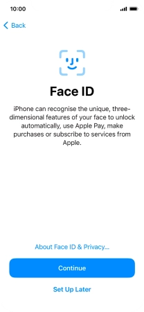Follow the instructions on the screen to turn on use of Face ID or press Set Up Later.