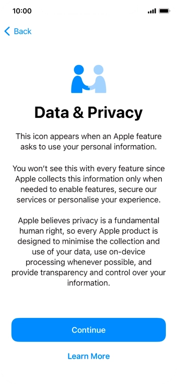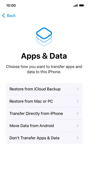 Press Don't Transfer Apps & Data and follow the instructions on the screen to finish the activation.