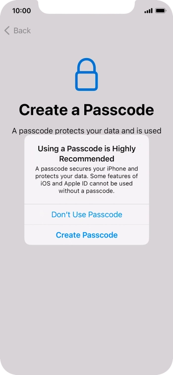 Follow the instructions on the screen to turn on use of phone lock code or press Don't Use Passcode.