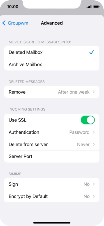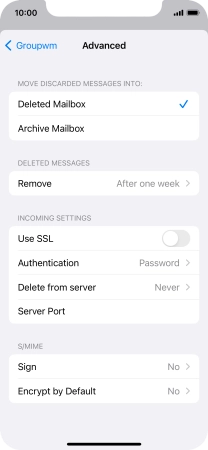Press the required email account and follow the instructions on the screen to select settings for the specific account.