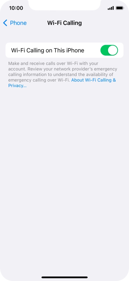 Press the indicator next to "Wi-Fi Calling on This iPhone" to turn the function on or off.