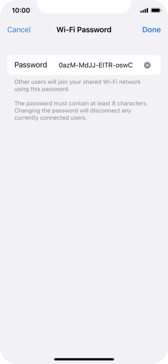 2 Key in the password for personal hotspot