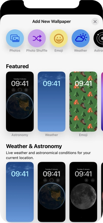 Press Customise and follow the instructions on the screen to customise the selected lock screen.