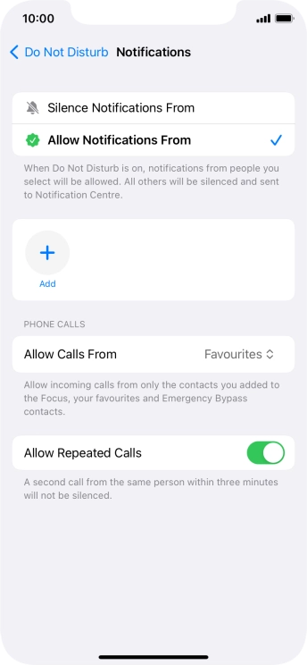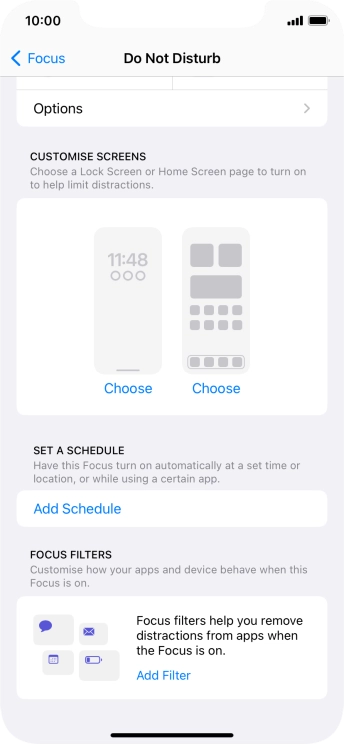 Press Add Schedule and follow the instructions on the screen to select settings for automatic activation of Do Not Disturb.