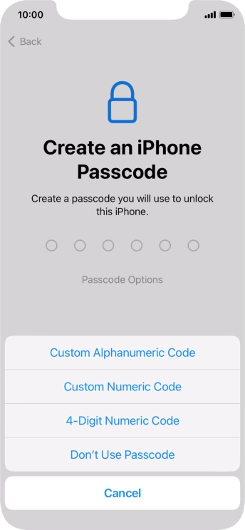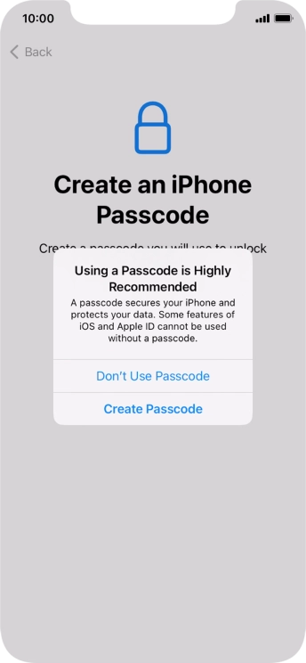Follow the instructions on the screen to turn on use of phone lock code or press Don't Use Passcode.