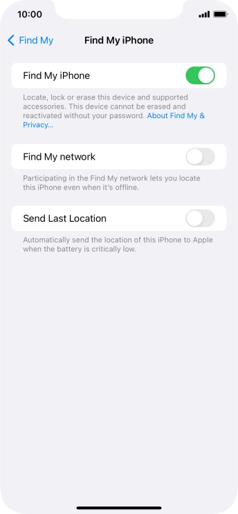 Press the indicator next to "Find My iPhone" to turn on the function.