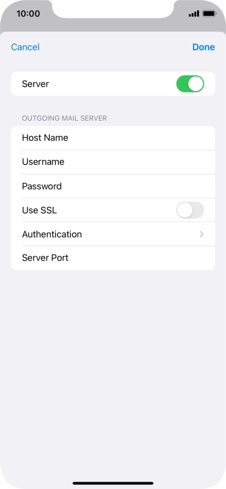 Press Host Name and key in the name of your email provider's outgoing server.