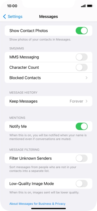 Press the indicator next to "MMS Messaging" to turn on the function.