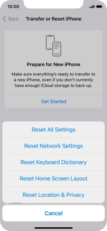 Press Reset All Settings. Wait a moment while the factory default settings are restored. Follow the instructions on the screen to set up your phone and prepare it for use.
