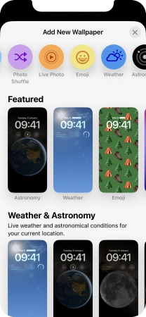 Press Customise and follow the instructions on the screen to customise the selected lock screen.