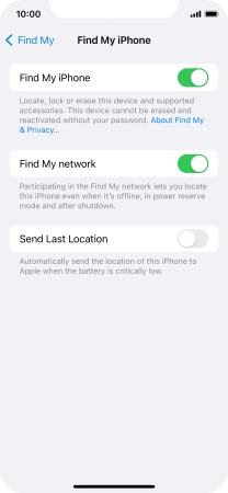 Press the indicator next to "Find My iPhone" to turn on the function.