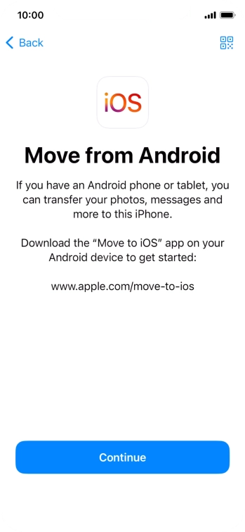 Follow the instructions on the screen and in the "Move to iOS" app to transfer the content from the Android phone to your phone and set up your phone and prepare it for use.