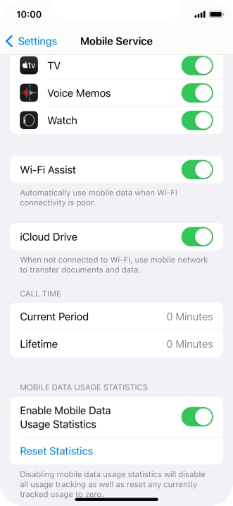 Press the indicator next to "Wi-Fi Assist" to turn the function on or off.