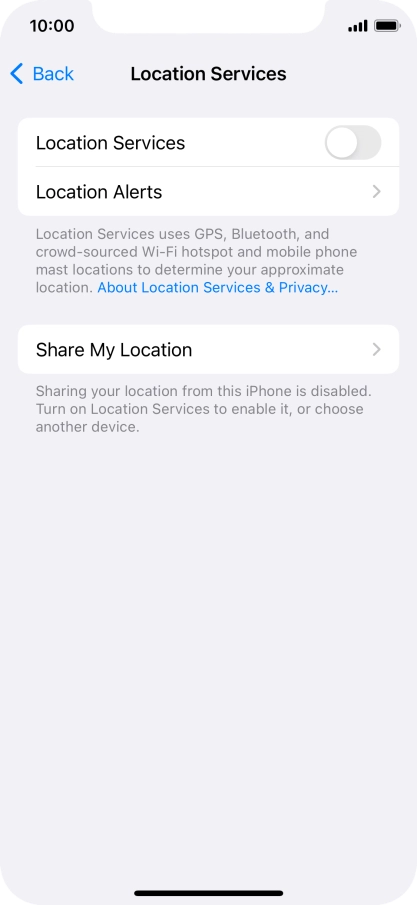 Press the indicator next to "Location Services" to turn the function on or off.