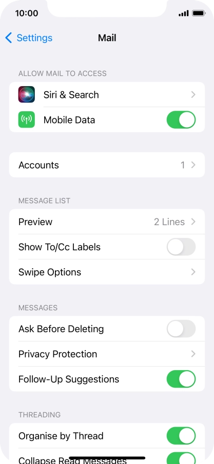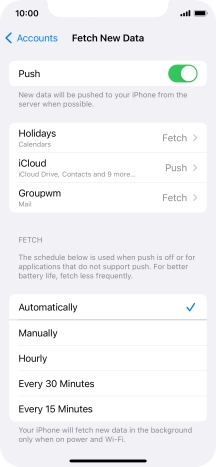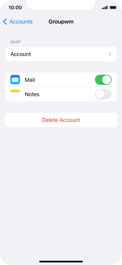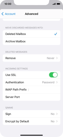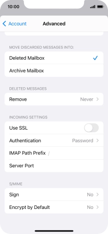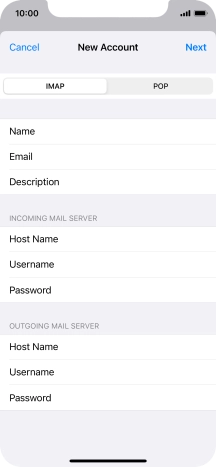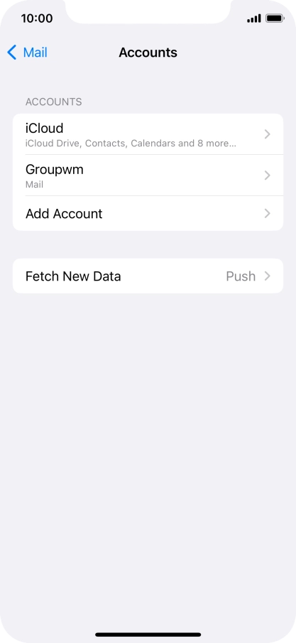 Press the required email account and follow the instructions on the screen to select settings for the specific account.