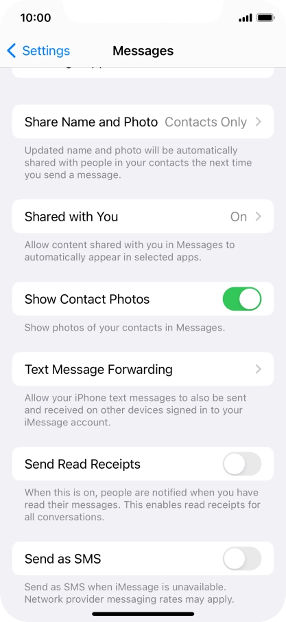 3 Turn text message alternative on or off