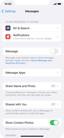 Press the indicator next to "iMessage" to turn on the function.