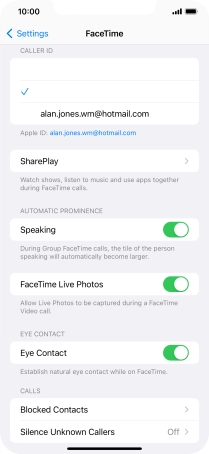 Select FaceTime settings