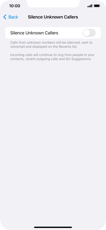 Press the indicator next to "Silence Unknown Callers" to turn the function on or off.