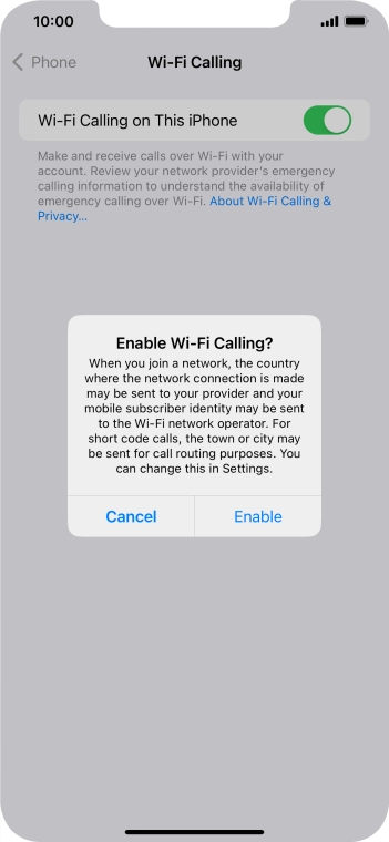 Press the indicator next to "Wi-Fi Calling on This iPhone" to turn the function on or off.