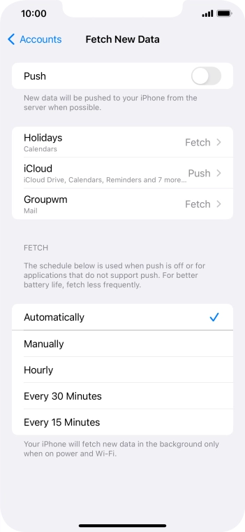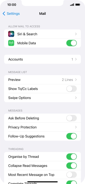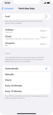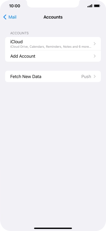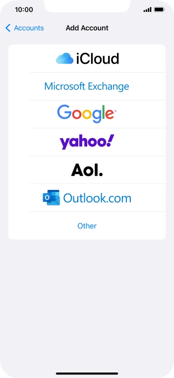 Press the required email account and follow the instructions on the screen to select settings for the specific account.
