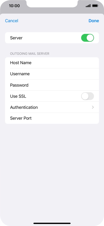 Press Host Name and key in the name of your email provider's outgoing server.