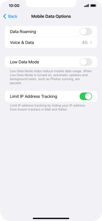 2 Turn data roaming on or off