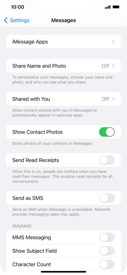 Press the indicator next to "Send as SMS" to turn the function on or off.