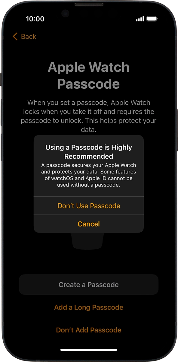 On your phone: Follow the instructions on the screen to turn on use of phone lock code or press Don't Add Passcode.