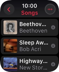You can use the music player to play audio files you've synchronised with your Apple Watch. To use the music player, you need to establish a connection to a Bluetooth headset.