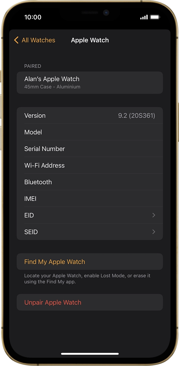 On your phone: Press Find My Apple Watch. If you're asked to log on, log on with your Apple ID.