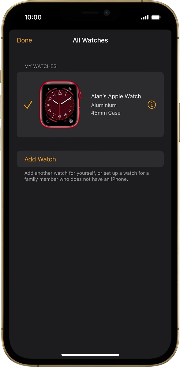 On your phone: Press the information icon next to the name of your Apple Watch.