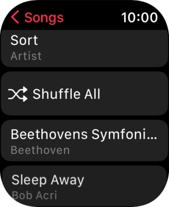 You can use the music player to play audio files you've synchronised with your Apple Watch. To use the music player, you need to establish a connection to a Bluetooth headset.