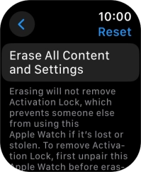 Press Erase All. Wait a moment while the factory default settings are restored. Follow the instructions on the screen to set up your Apple Watch and prepare it for use.