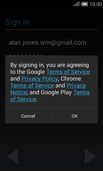 Press OK and follow the instructions on the screen to select settings for your Google account.