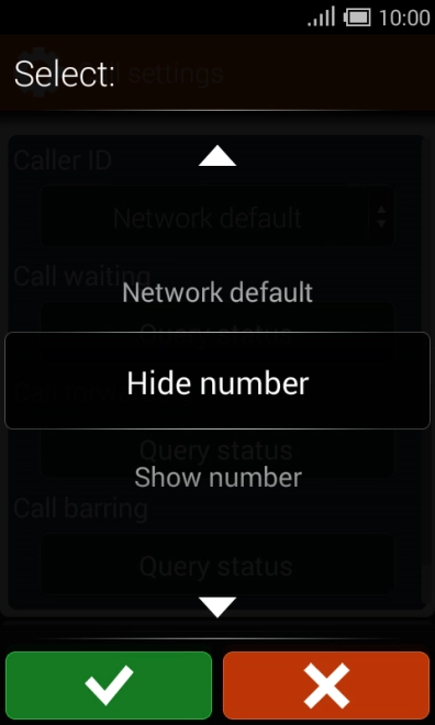 Press Hide number and press the confirm icon to turn off caller identification.