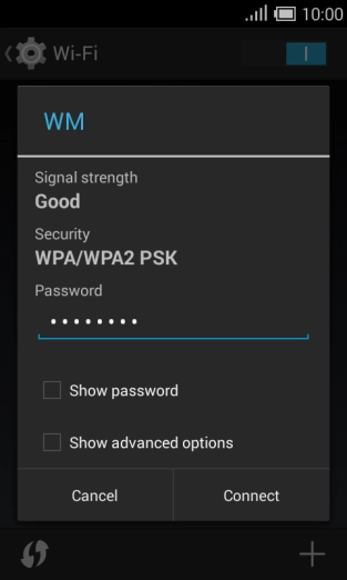Key in the password for the Wi-Fi network and press Connect.