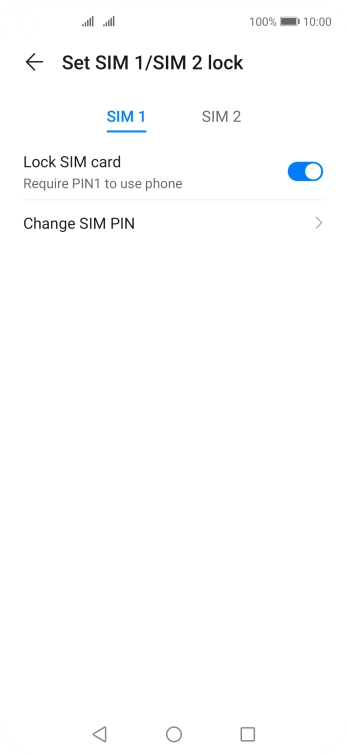 Press the indicator next to "Lock SIM card" to turn the function on or off.