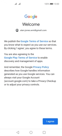 Press I agree and follow the instructions on the screen to select settings for your Google account.