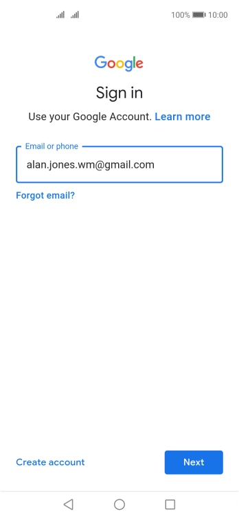 If you don't have a Google account, press Create account and follow the instructions on the screen to create an account.