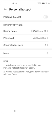 Press the indicator next to "Personal hotspot" to turn on the function.