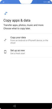 Press the required setting and follow the instructions on the screen to transfer the content from the other phone and finish the activation of your phone.