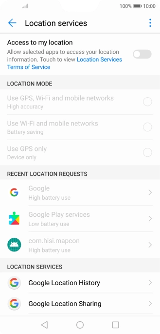 Press the indicator next to "Access to my location" to turn the function on or off.