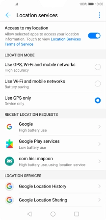If you select Use GPS only, your phone can find your exact position but it may take longer as there is no access to supplementary information from the mobile network or nearby Wi-Fi networks.