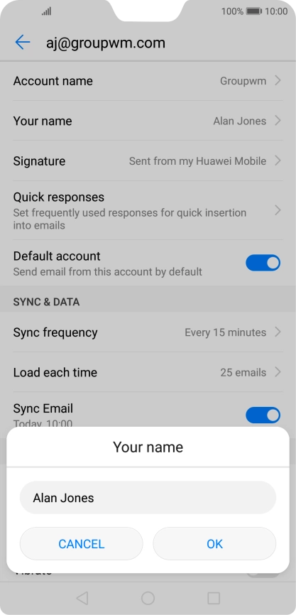 Press Your name and key in the required sender name.