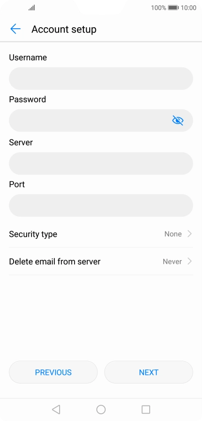 If this screen is displayed, you email account has been recognised and set up automatically. Follow the instructions on the screen to key in more information and finish setting up your phone.