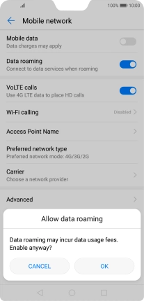 Press the indicator next to "Data roaming" to turn the function on or off.