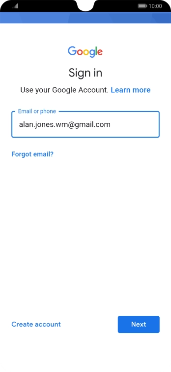 If you don't have a Google account, press Create account and follow the instructions on the screen to create an account.