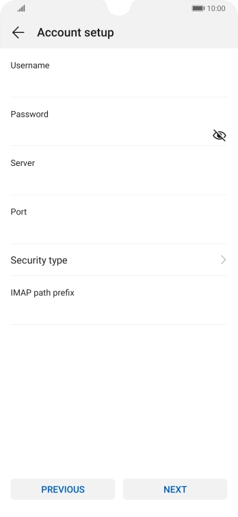 If this screen is displayed, you email account has been recognised and set up automatically. Follow the instructions on the screen to key in more information and finish setting up your phone.